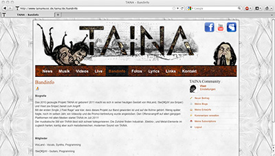 wir brauchen euren Support. TAINA wurde in die Final-Runde vom "Battle of the Bands" Contest von der Zeitschrift Sonic Seducer gewählt. Mehrere hunderte Bands haben sich für diesen Contest beworben. Für die besten 30 kann man jetzt via Internet abstimmen. Jetzt seid ihr gefragt! Unter folgendem link votet bitte für unseren Song "I Feel Rage".